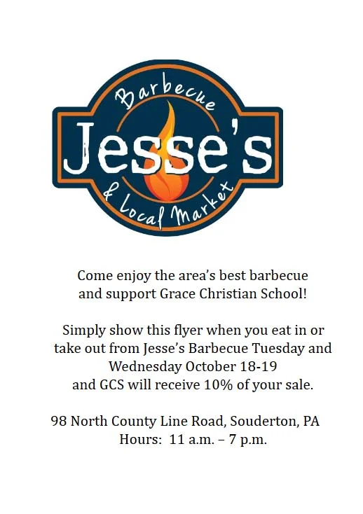 Whether you dine in or grab some take-out, Jesse's Barbecue will donate 10% of all proceeds from purchases made October 18, 2016 & October 19, 2016 when this flyer is shown.